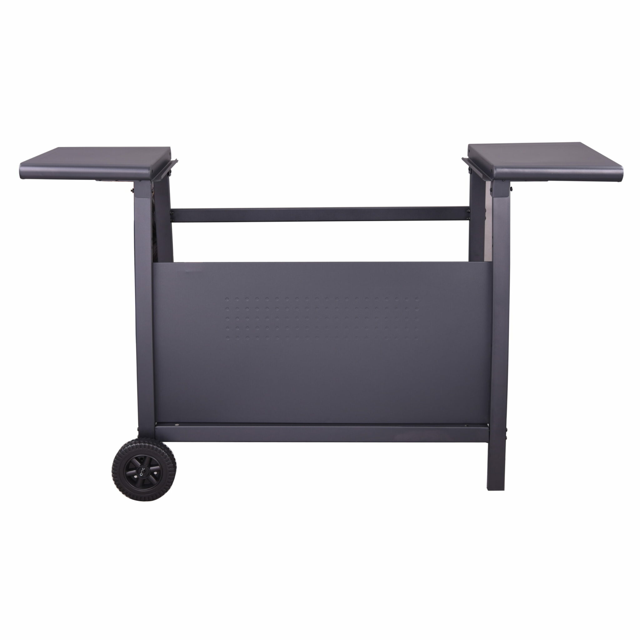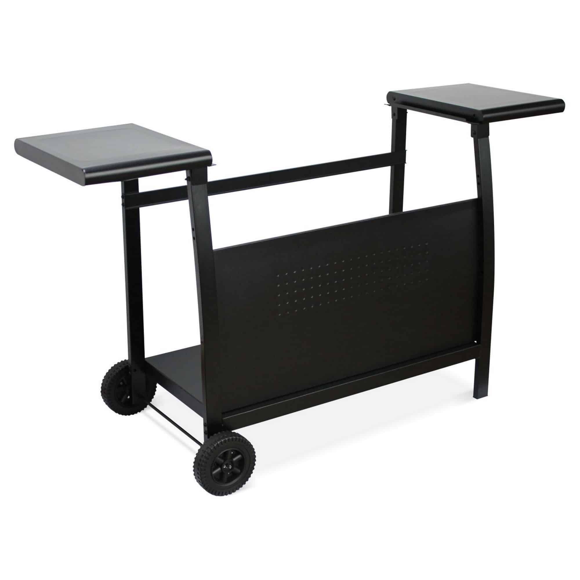 - Black powder coated trolley with a big shelf and side tables