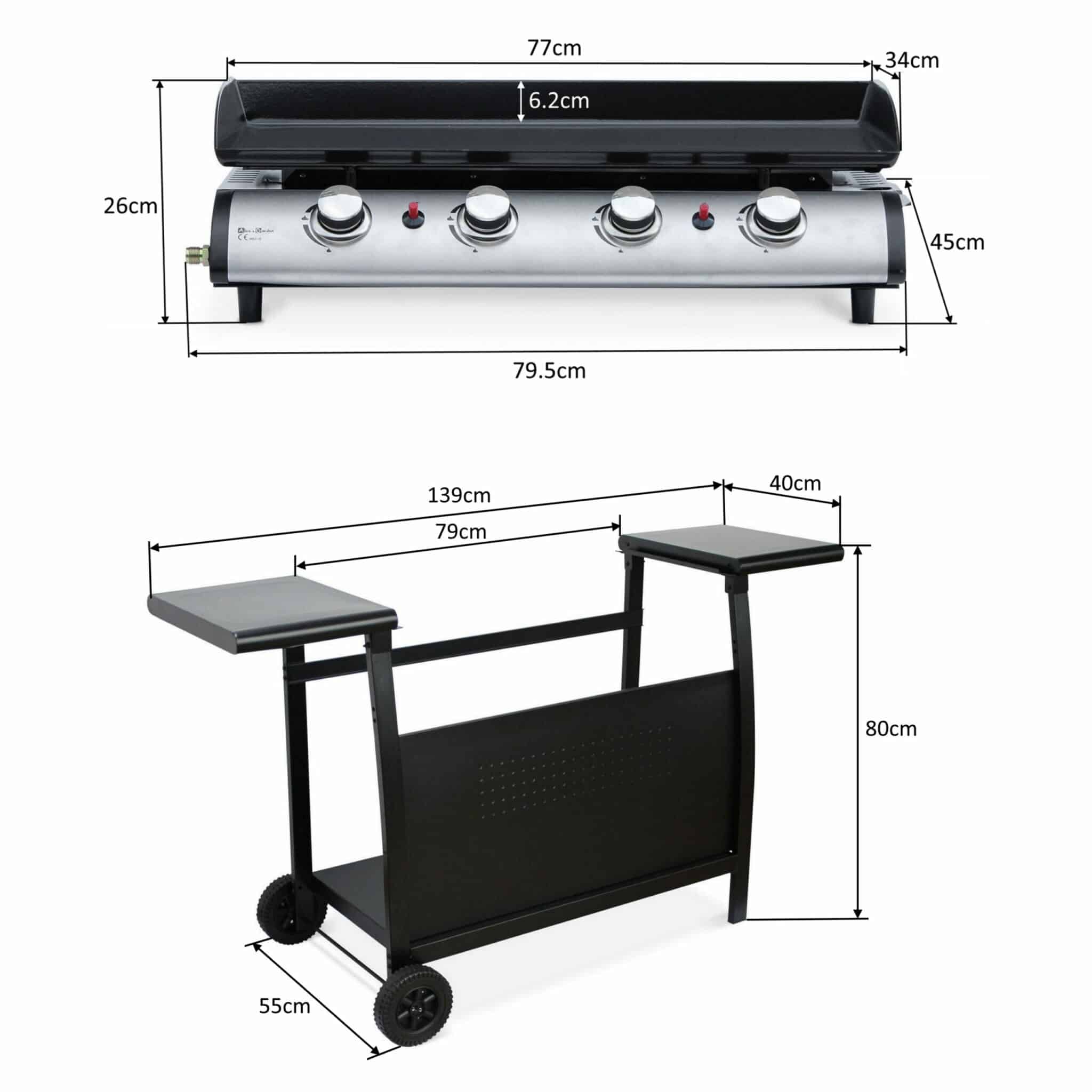 The Callow 4 Burner Gas Griddle and Plancha with Stand and Side Tables in bullets: