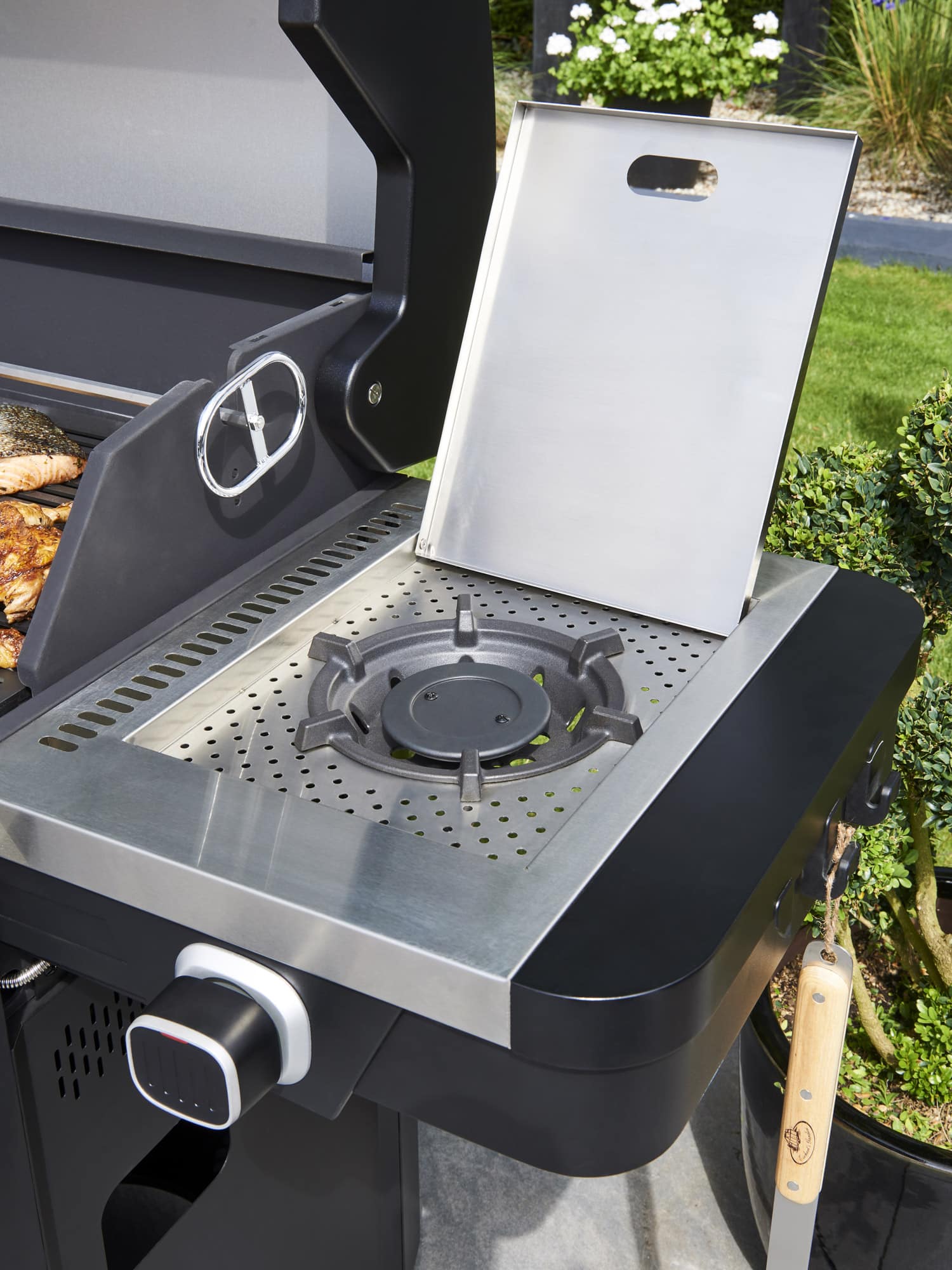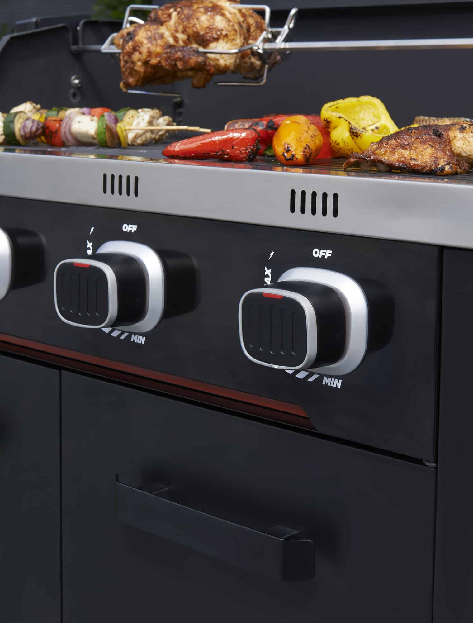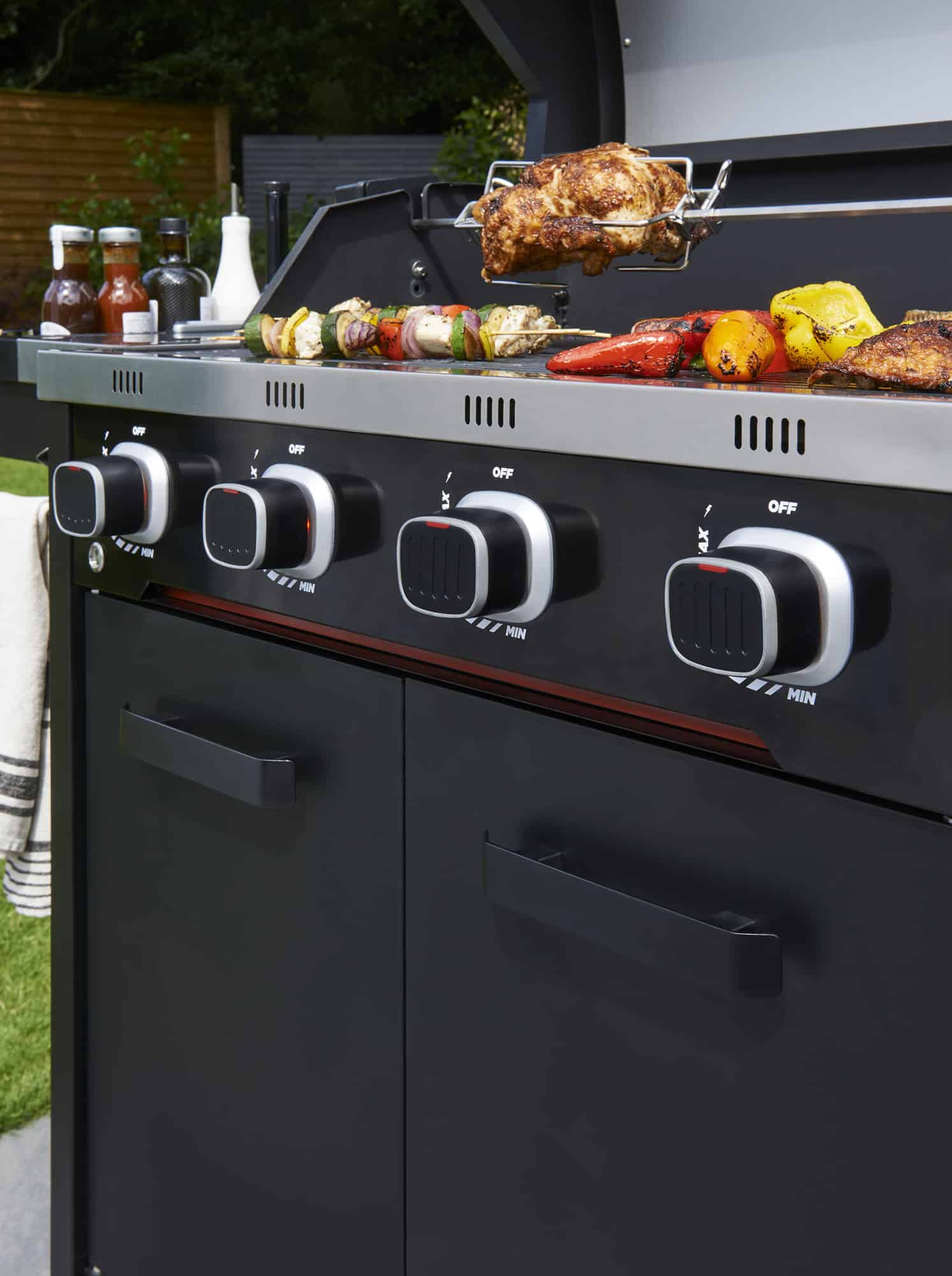 This is Norfolk Grills INFINITY 500 Gas BBQ with Side Burner. It’s big, bold and lets keen garden chefs cook up all sorts of goodies quickly, tastily and creatively. It’s a lot like cooking indoors, with the kind of controls you get on an oven… but it’s so much more fun! What a great way to create gorgeous foods outdoors. There’s a rotisserie for who chickens and big fish. The stainless steel burner, rear burner and 3.3kw side burner make life even easier.